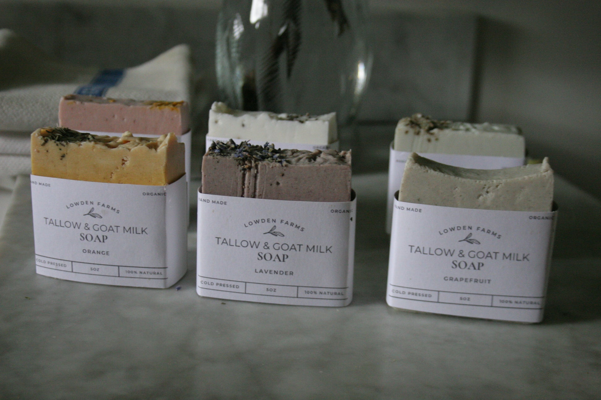 Organic grass-fed beef tallow, goat milk soap base, Cold pressed avocado oil, Vitamin E oil, Chia Seeds